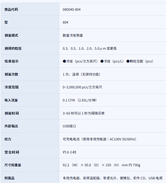 804 型是一款结构紧凑、重量轻、易于操作的多功能手持式粒子计数器。